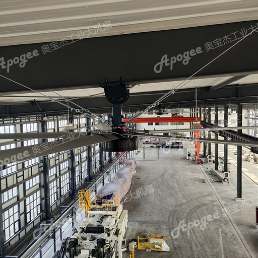 奧寶杰永磁工業(yè)吊扇已經(jīng)在眾多汽車企業(yè)得到應(yīng)用, 無論是大跨度工字鋼廠房,還是球形網(wǎng)架鋼結(jié)構(gòu)廠房奧寶杰工業(yè)吊扇都有成功案例。特別是,對于整車廠面積大, 地面設(shè)備多,物料多特點(diǎn), 奧寶杰采用核心技術(shù)開發(fā)的永磁直驅(qū)吊扇,由于產(chǎn)品重量輕,體積小, 安裝所需空間小,智能控制, 集中控制等優(yōu)勢,永磁工業(yè)吊扇可安裝在各種復(fù)雜廠房環(huán)境。